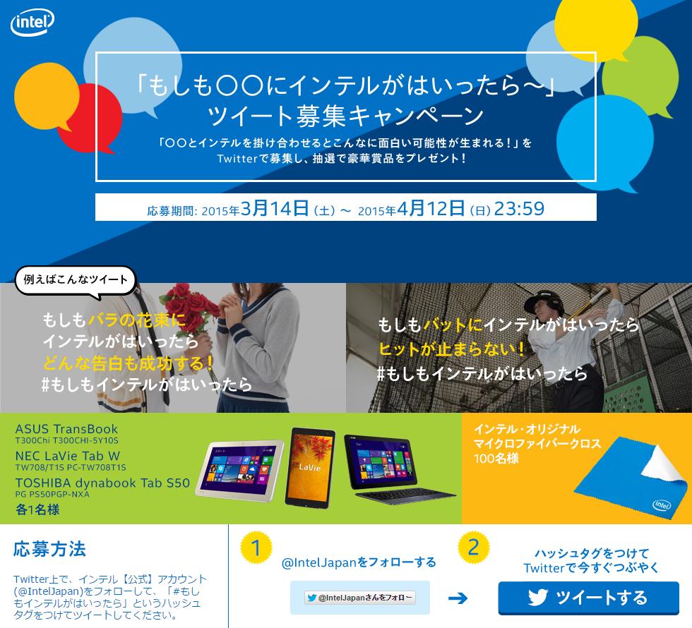 ……と、考えてみると想像がふくらんでくる「もしもテレビにインテルがはいったら」。キャンペーンサイトでは参加者のツイートを確認できるので、それを見ているだけでも楽しくなりますよ。いい案が思いついたら、迷わずツイートしてみましょう。キャンペーン期間は2015年4月12日(日)23時59分までです。
