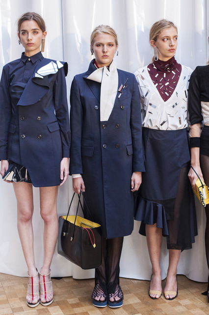 コレクションテーマは「反射、浮遊感、断片化」。洋服には様々な形のミラーが施され、光を受けて輝きを放つ。多用されたシースルーの素材は、動くたびにやわらかく揺れ動く。抽象絵画の要素をコラージュのようにデザインしたドレスはまるでアート作品のよう。合わせるメイクは、フレッシュで美しいルック。目元と頬に赤とブラウンの色調を使うことで、少しタフな印象を与えている。